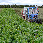2009-10-14 収穫 ビート 日甜芽室工場の操業は16日からだそうだ。6-7月の低温多雨、日照不足で予想収穫量は近年になく減収の見込み。だからいつもより遅い操業開始になる。 よりによって我が家など駒畠の数戸がその初日出荷に当たってしまった。11日から掘り始まっている。ウチのビート、小さい…、やっぱり…。糖分もまだ乗り切っていないだろうなぁ。